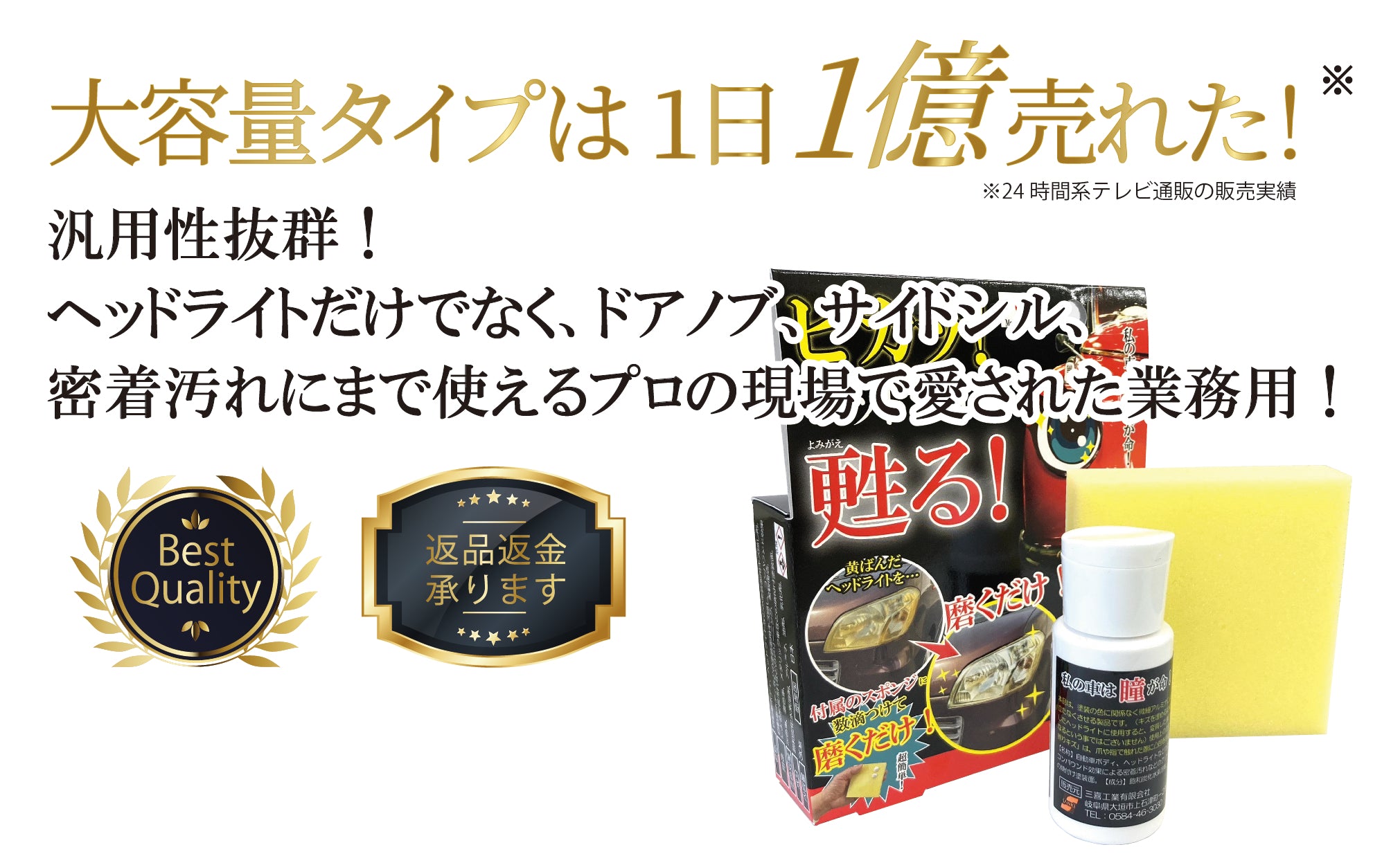 【中古車板金業者愛用】車のヘッドライトクリーナー(専用スポンジ付き)
